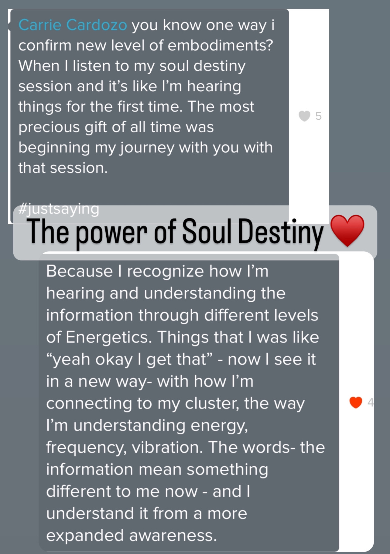 Soul Destiny Experiences are like none other you'll find. They are incredibly accurate, and allow you to truly understand on a deeper level, embodying what you came into this life to achieve. Not just your purpose, but your reason for living and what you're here to learn, experience and leave behind!